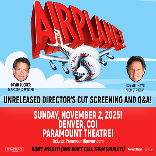 Comedy classic Airplane! is cleared for takeoff once again in a special Unreleased Director’s Cut screening, followed by a live Q&A with co-writer/co-director David Zucker and actor Robert Hays. This once-in-a-lifetime event lands at Denver’s Paramount Theatre on November 2, 2025, giving comedy fans a rare chance to experience this iconic film like never before—on the big screen, 45 years after its original release.